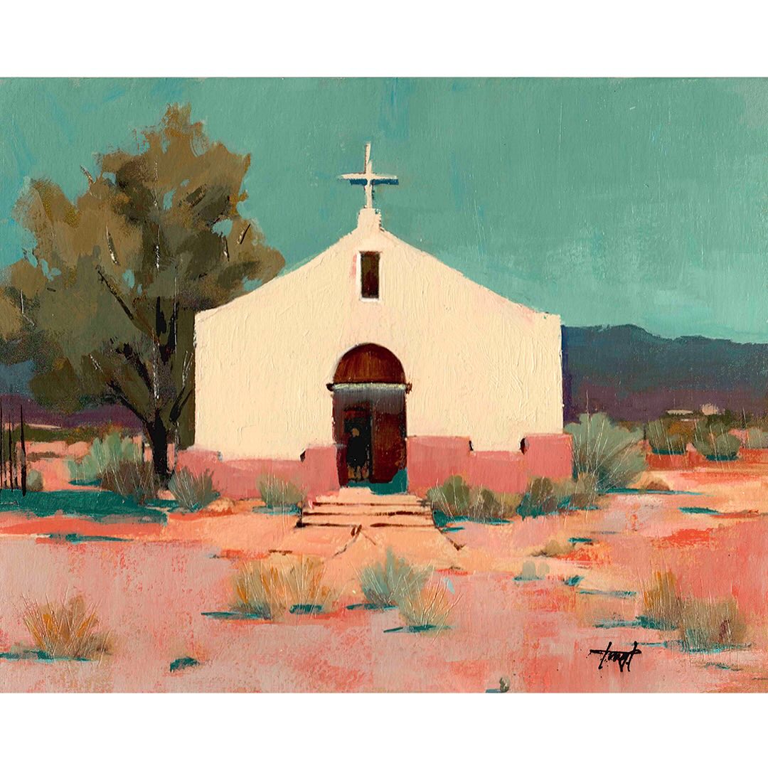 His work captures the essence of New Mexico, painting a vivid portrait of the cowboy lifestyle and sun-drenched deserts, where human spirit and natural elements intertwine.