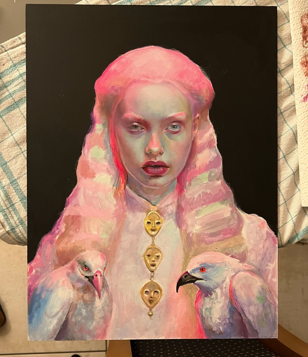 Nadine Tralala, a figurative oil painter, infuses traditional techniques with a contemporary color palette to create a unique and captivating style.