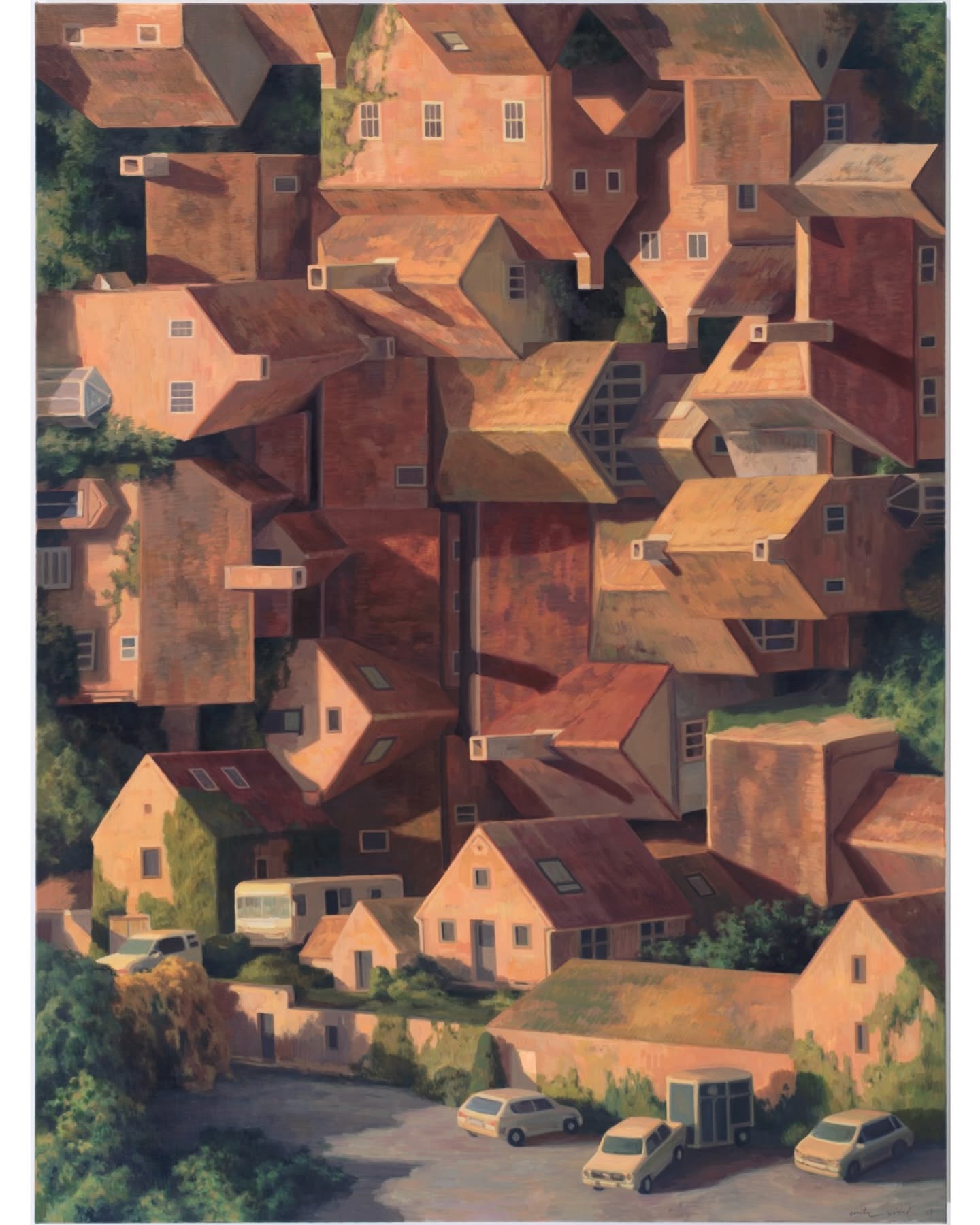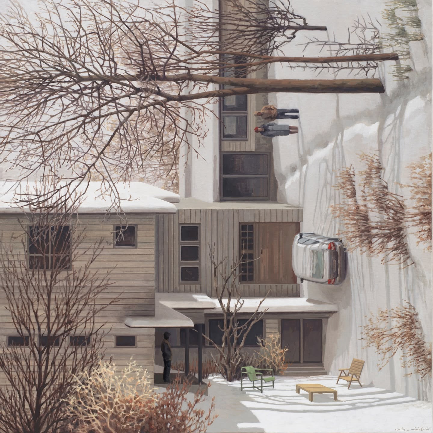 Cinta Vidal creates captivating acrylic paintings and murals that defy gravity and challenge traditional perspectives of architecture.