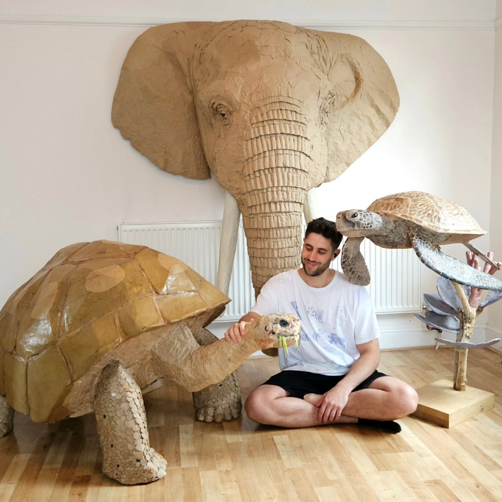 Josh is a wildlife artist who creates stunning life-size animal sculptures from recycled cardboard, blending sustainability with artistry.