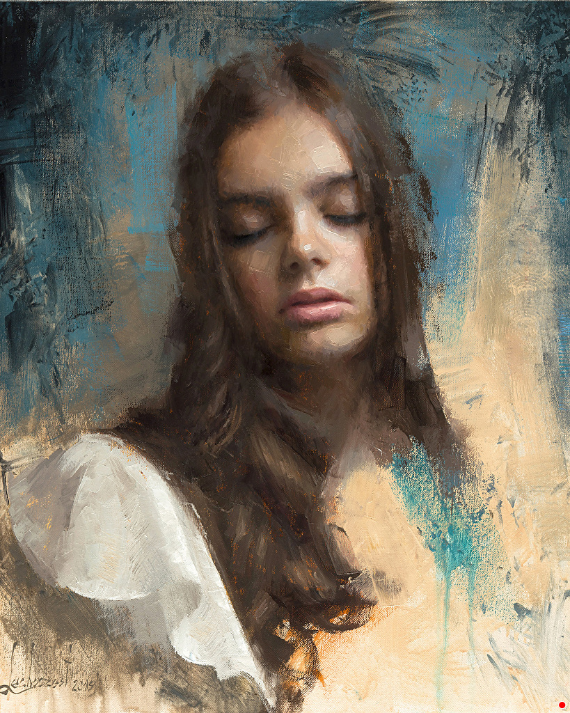 Damian’s portraits aim to capture more than physical form, evoking a sense of mystery and universal beauty through simplified, abstract shapes that intensify emotional impact.